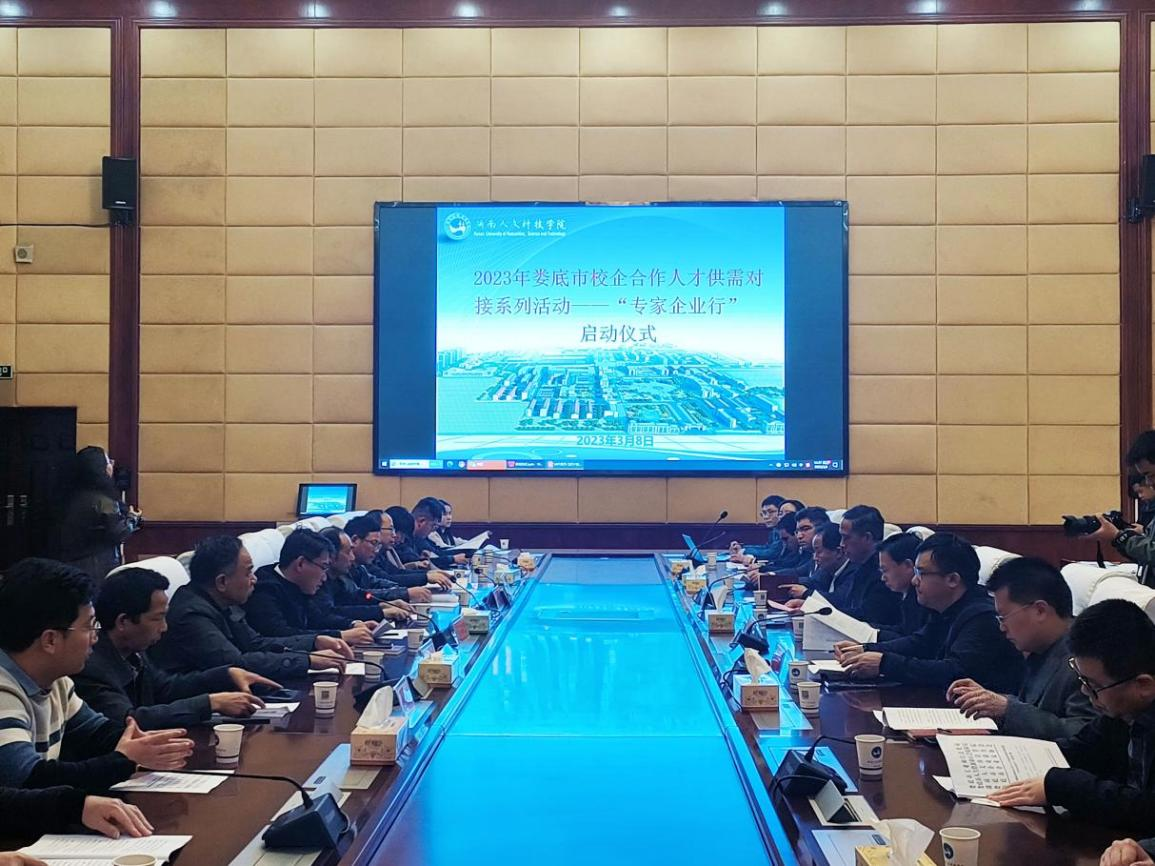 2023年3月8日,2023年婁底市校企合作人才供需對接“專家企業(yè)行”活動啟動儀式在湖南人文科技學(xué)院舉行。湖南人文科技學(xué)院黨委副書記、校長劉鐵銘,婁底市人民政府原副市長、婁底市企業(yè)聯(lián)合會、企業(yè)家協(xié)會會長余明庭,市工信局黨組成員、副局長肖鑒亮,市企業(yè)聯(lián)合會、企業(yè)家協(xié)會常務(wù)副會長劉福高,參與“專家企業(yè)行”的專家教授等出席啟動儀式。