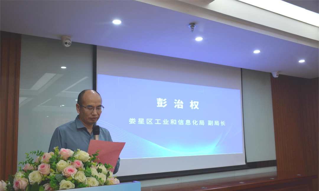 (圖為區(qū)工信局黨組成員、副局長彭治權(quán)致辭)