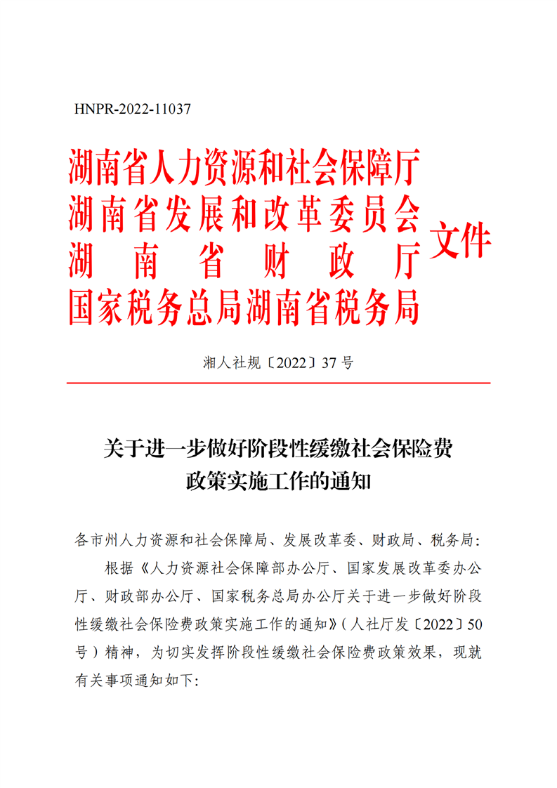 湖南印發(fā)《關(guān)于進(jìn)一步做好階段性緩繳社會保險費政策實施工作有關(guān)問題的通知》