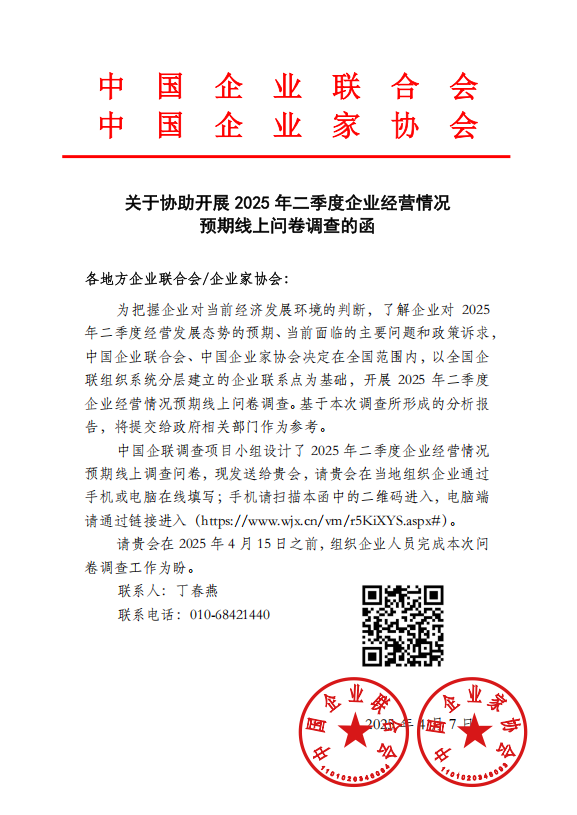 關(guān)于協(xié)助開(kāi)展 2025 年二季度企業(yè)經(jīng)營(yíng)情況預(yù)期線上問(wèn)卷調(diào)查的函