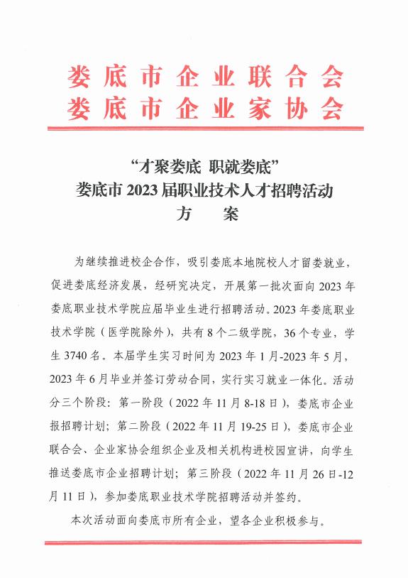 “才聚婁底 職就婁底”婁底市2023屆職業(yè)技術(shù)人才招聘活動方案