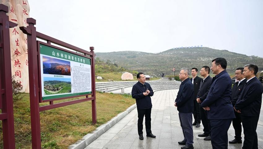 (10月9日,沈曉明來到冷水江錫礦山,實地察看礦山修復(fù)、尾礦庫治理、銻污染河道治理等工作。)